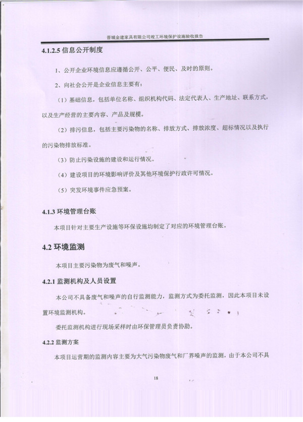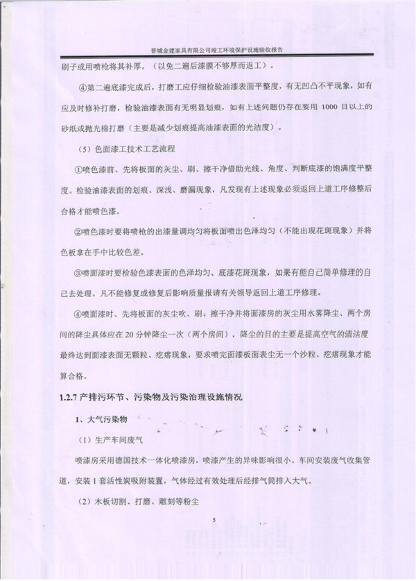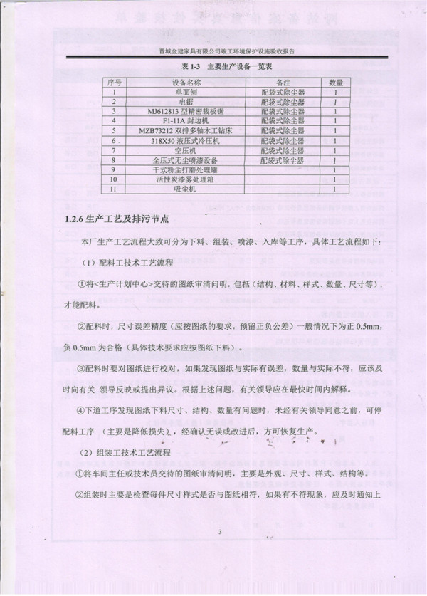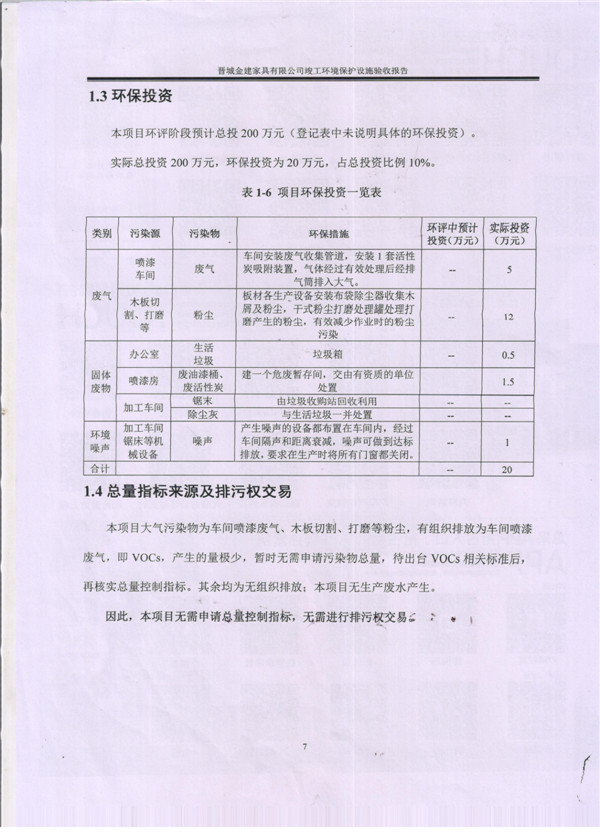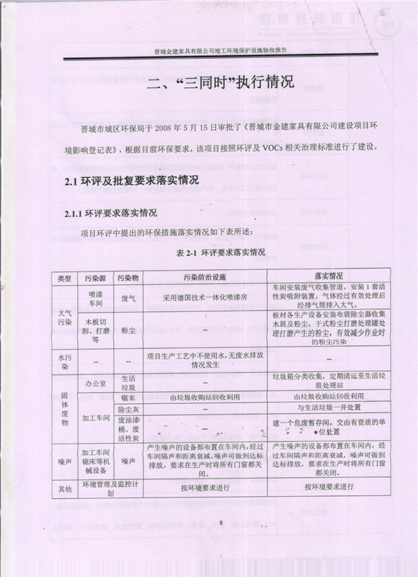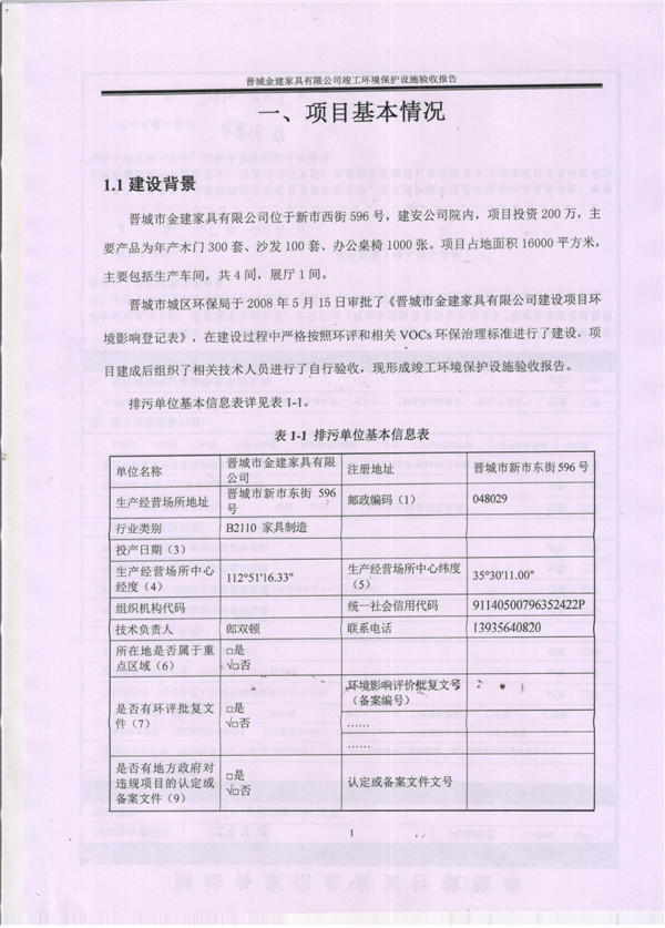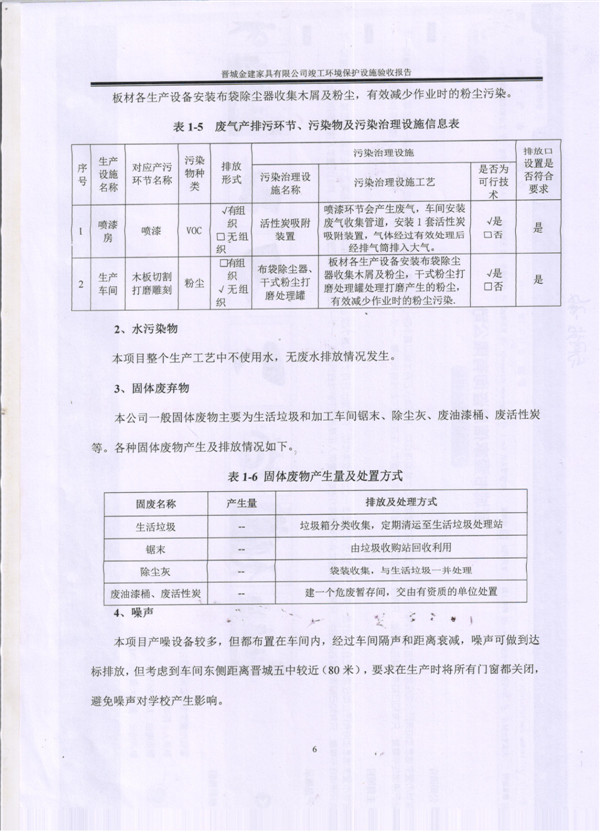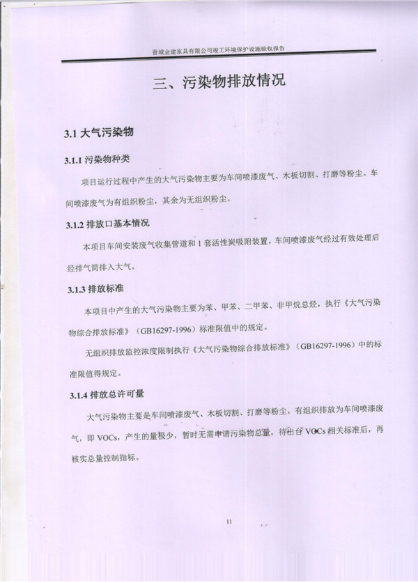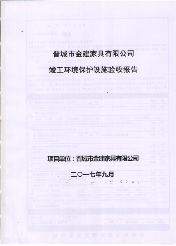 晉城市金建家具有限公司竣工環(huán)境保護(hù)設(shè)施驗(yàn)收?qǐng)?bào)告