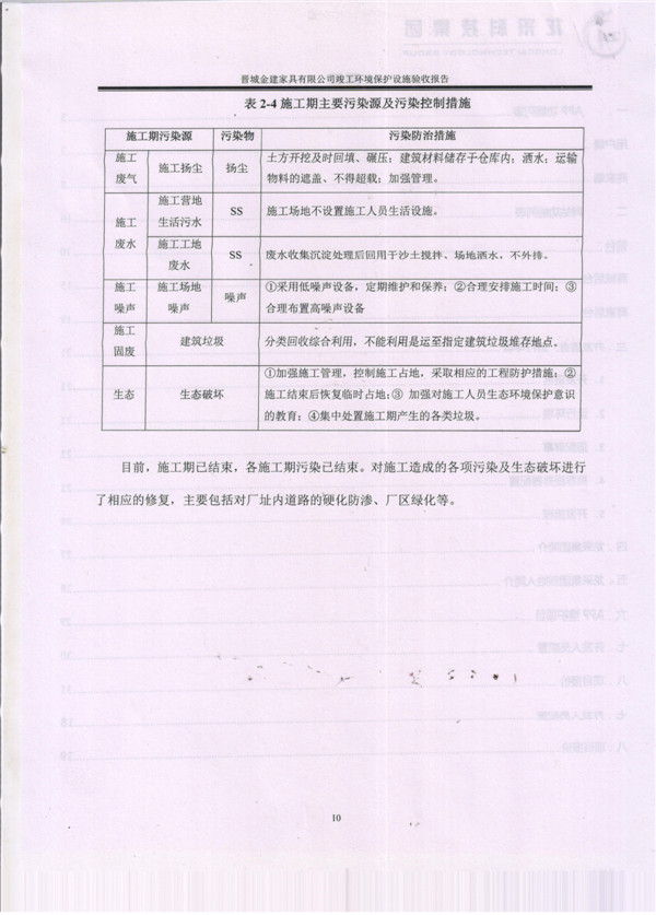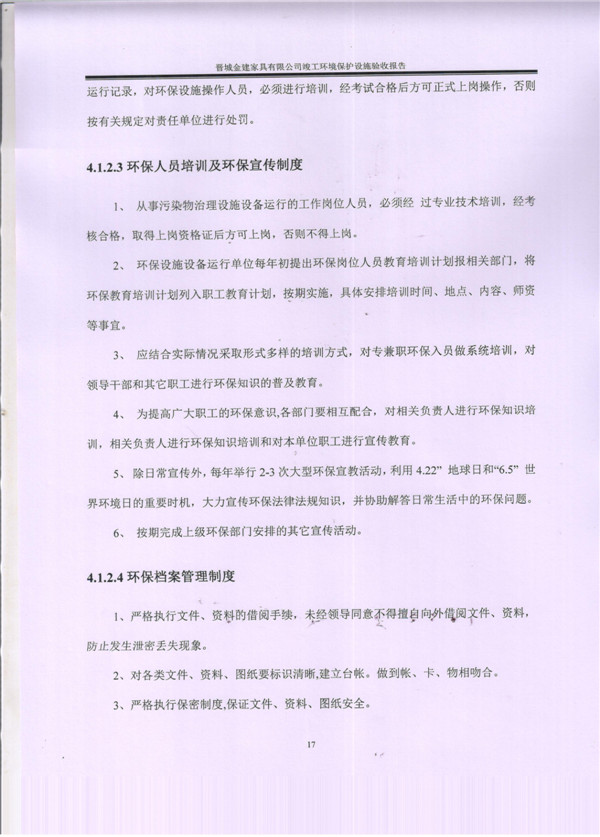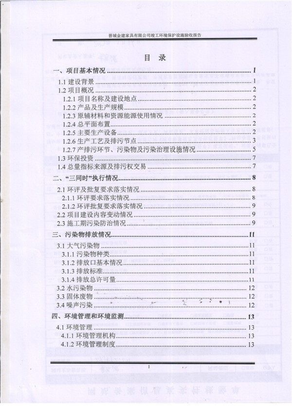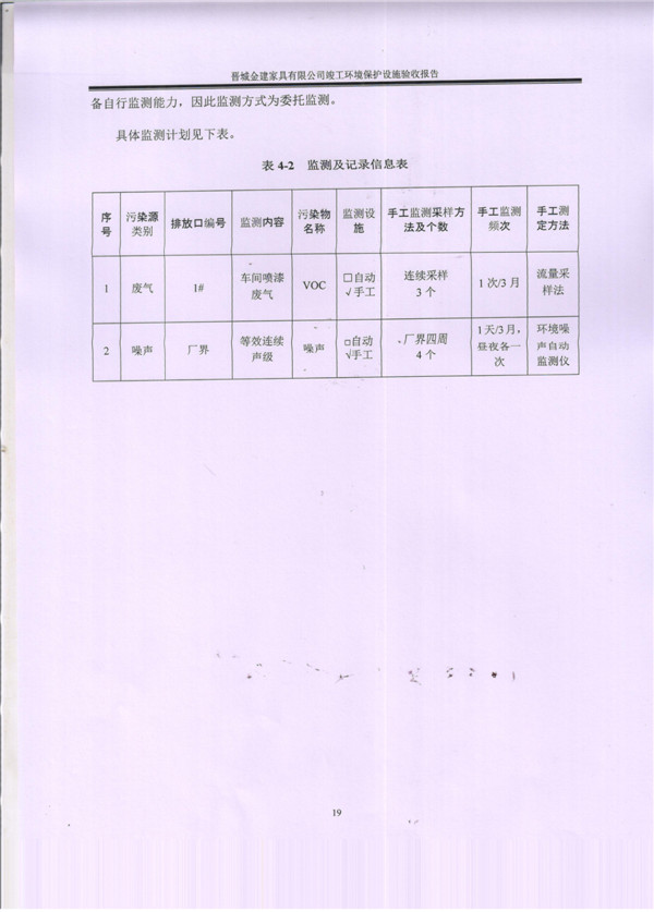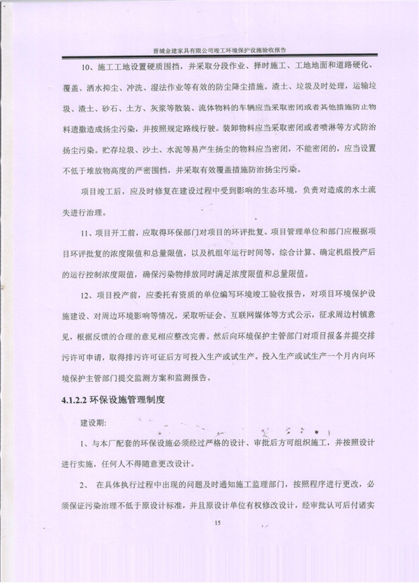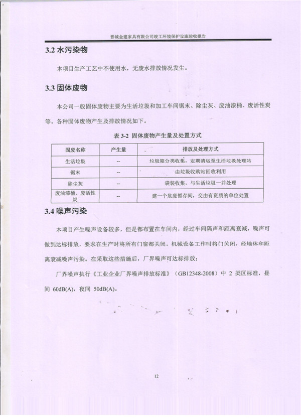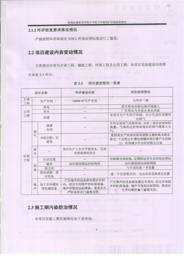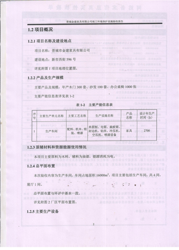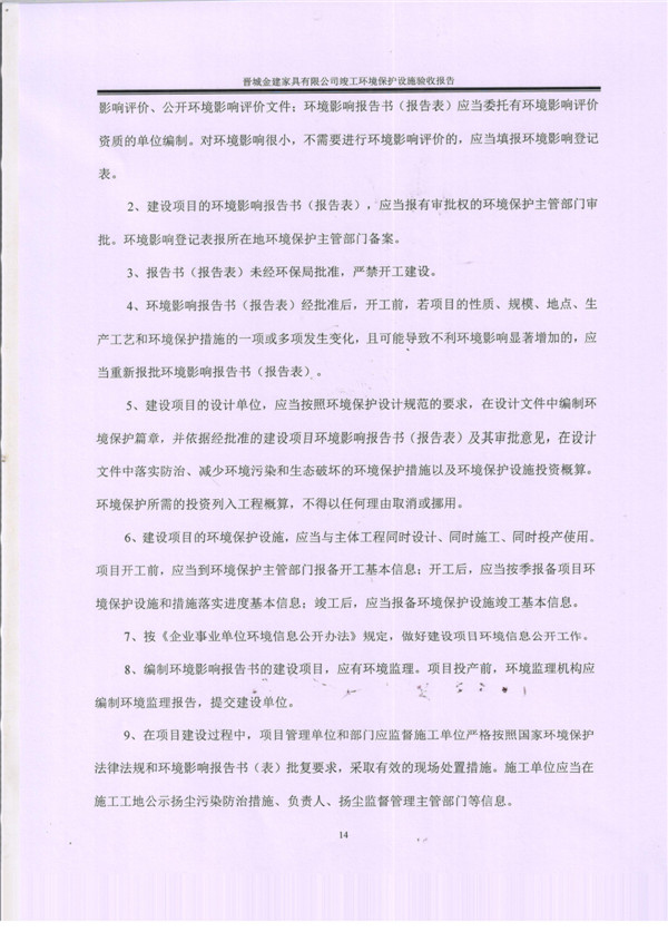 晉城市金建家具有限公司竣工環(huán)境保護(hù)設(shè)施驗(yàn)收?qǐng)?bào)告